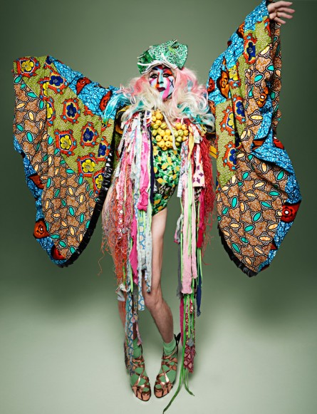 I designed painted mannequins with ribbon streamer arms to mount the top of the totems for extra height, drama and funk - and I always love a mannequin.